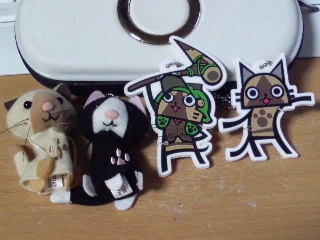 ☆5なのになー。 今日はレイアとレウスの顔は一度みただけで、ガノトトスとタイマン張りまくって来ました。 途中で眠くなったので、2ndちゃんを育てつつこっちも挫折したので、先ほどティガレックスくんにアタックしましたが、あっさり挫折。 その後、ガノトトス亜種にアタックしましたが、こちらも集中力が尽きたようでさっぱり挫折してきました。 ダメですね、集中力がないとサクサク体力なくしますね! いい加減勝たせてくれてもいいような気がしますよ! 特にそこのグラビモスくん! 現在ねこグッズまみれです。 本当にバカですね。 画像はほんの一部。 他にもマグとかシールとかクリーナーとか、いろいろいろいろあるのです。 ええ、あるのですよ。 7/30発送の新しいマグの予約とかしちゃったし。 バカだにゃ~。 そして見て欲しいのは、画像3枚目。 物 欲 退 散 の四文字。 これ私にはとっても必要。 モンハンの世界でも。 さすがですカプコン。 物欲センサー本当は搭載してるんでしょ?ね? ノーコメントだなんてもったいぶってないで、白状した方がいいですよ、ホント。 物欲センサー付きのゲームニャんだもんね!きっと! 狩人組合とかって本当にありそうで笑えます。 いや、現実にそういう団体はあるんだけど、コレとは意味が違うからね(笑 とにかくワタクシにはこれ重要。 物欲退散ンンンンンンンンンンンン!!!!! Windows2000なので、アレが使えません…。