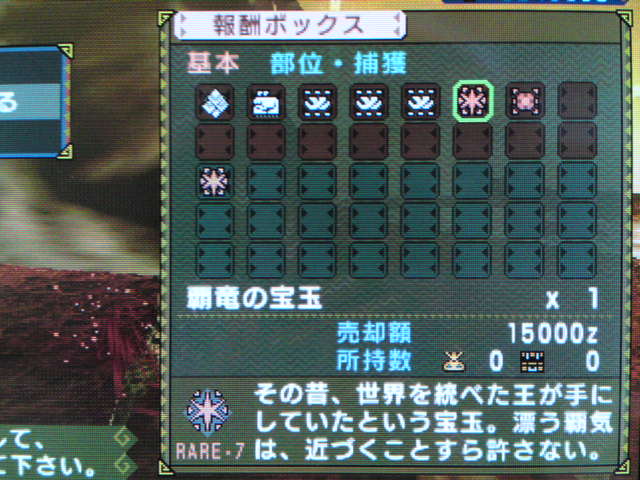 このページで使用されている画像はPSP用ゲーム「MONSTER HUNTER Portable 2ndG」及び「MONSTER HUNTER PORTABLE 3rd」より携帯で撮影したものです。