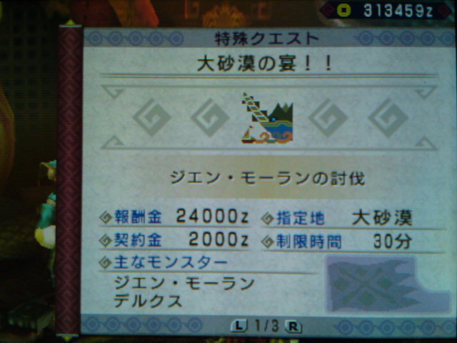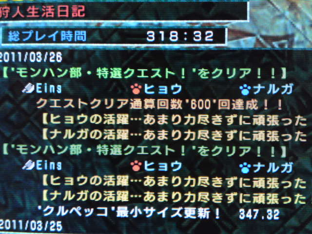 このページで使用されている画像はPSP用ゲーム「MONSTER HUNTER Portable 2ndG」及び「MONSTER HUNTER PORTABLE 3rd」より携帯で撮影したものです。