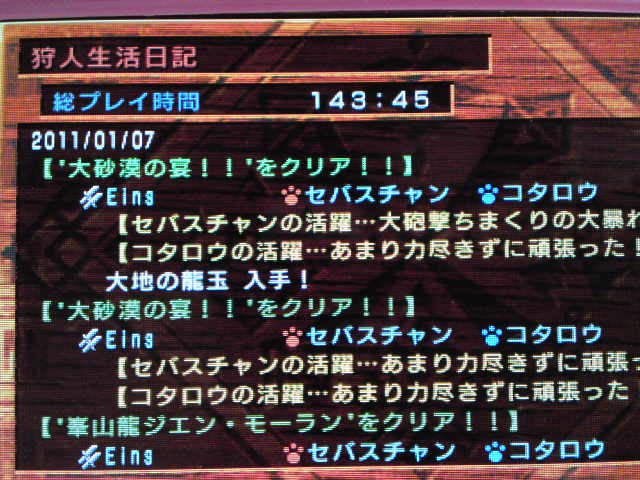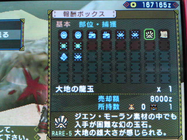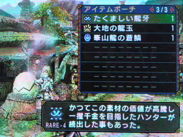 このページで使用されている画像はPSP用ゲーム「MONSTER HUNTER Portable 2ndG」及び「MONSTER HUNTER PORTABLE 3rd」より携帯で撮影したものです。