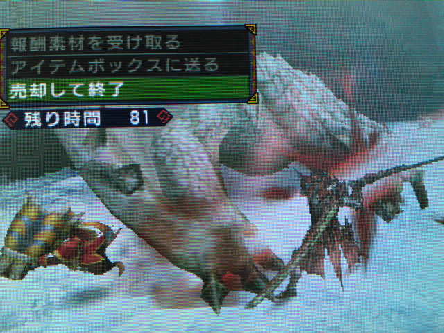 しばらくティガの居るところにギギネブラが来たり面倒でしたが、大したトラブルもなく終わりました。