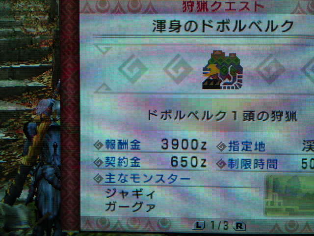 見事ドリンククエスト出たんですけどね…小闘技場でドスファンゴ二匹とかメンドイんで保留中。