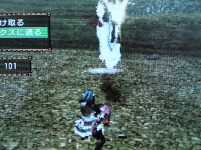 一匹目は武器を研いでよし!ってしたらオトモのハンゾーちゃんに倒されちゃった…(ノ□`)