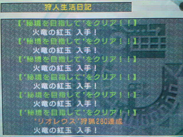 このページで使用されている画像はPSP用ゲーム「MONSTER HUNTER Portable 2ndG」及び「MONSTER HUNTER PORTABLE 3rd」より携帯で撮影したものです。